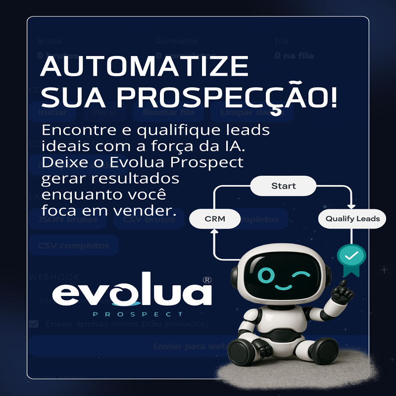 A Evolua Prospect usa inteligência artificial para encontrar,filtrar e entregar potenciais clientes diretamente para você.